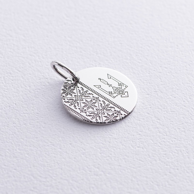 Silver pendant "Trident with embroidery"